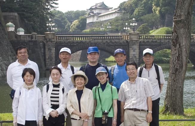 梅雨時であり、暑さもあり、ご多忙の日程の中、今回も計10名の参加でした。皇居は意外と涼しいということが発見でき、8月の暑さでも実行することになった。 次回は8月23日(土)午後2時皇居桜田門時計台集合。グルメの部は久しぶりに月島の「もんじゃ」の予定。 |