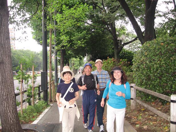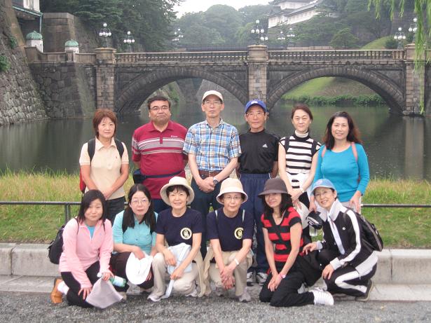 午後から雨という天気予報の中、実施か中止か迷ったが、夜の部もんじゃは予約済みでもありとにかく予定通り集合とした。幸いにも雨は時々ぽつぽつ程度で予定通り皇居外周2周ができた。