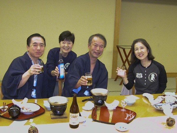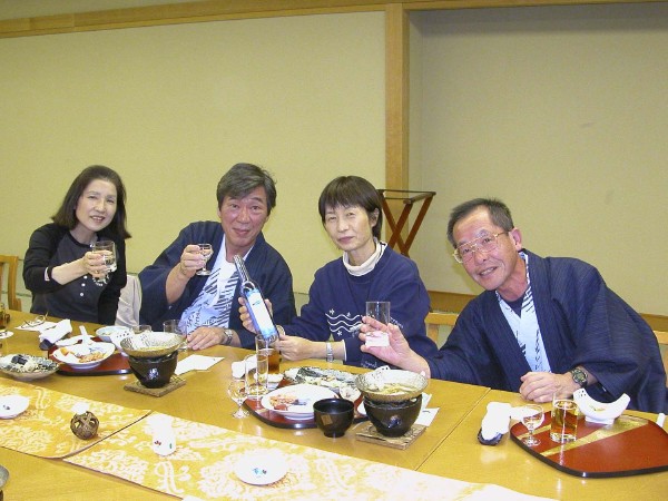 ゴール地点では、恒例のしじみ汁を始め、さといもの煮物、柿、チーズケーキ(女性のみ)、日本酒、ワイン、ジュース等を準備していただいた。休憩所とゴール地点で準備、お世話をしていただいた方々には特に感謝を申し上げたいと思います。ゴール地点では44年の跡部さんにお世話になりました。また今回事情で歩くことができなかった沢登君には、一高からゴール間を車にて伴走をしていただきおかげで重い荷物(一泊またニ泊用)を運んでいただき、たいへん助かりました。