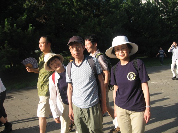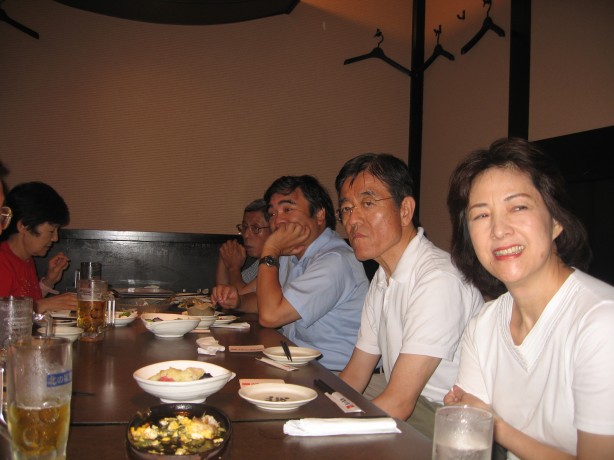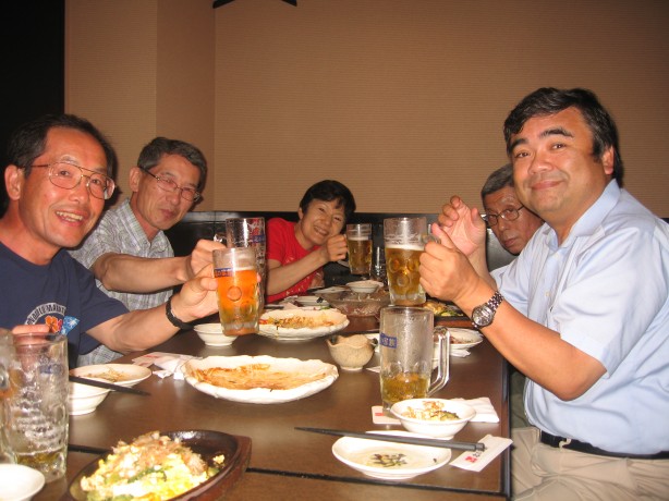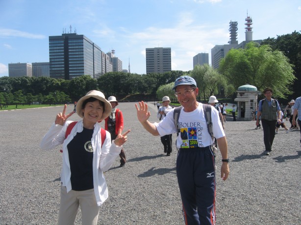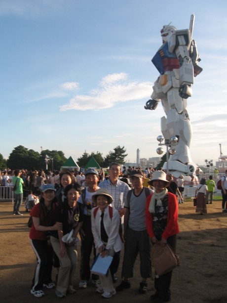 日時:2009年7月25日(土)午後2時- 場所:皇居外周(1周)から新橋、お台場(潮風公園)計12Km 参加者(敬称略、順不同) 1.ウォーキングの部(計10名): 峯川、三田、松島、早川、杉本、川東、土橋、金丸、磯貝、上泉 2.グルメの部(10-2+3名): 清水、清水の奥様、藤江 内容: 1. ウォーキングの部 久しぶりの皇居外周でのウォーキング。今回もふしぎなお天気でした。梅雨明けから1週間で戻り梅雨の雨が続き、当日も午前中まで(私の家の方は)降っていた。午後2時に桜田門集合時には真夏の太陽が輝く晴れとなり青い空と白い雲と皇居の緑が美しかった。暑さの中でのウォーキングだったが皇居まわりは緑も多く、日かげでは心地よい涼しい風が吹いていて汗をかきながらも不快な暑さは感じなかった。 ウォーキング前に、ストレッチに続いてウォーキングフォームの復習、スロー筋トレ、スロージョギングについての学習をした。 ◆ウォーキングフォーム 特に腕振りと足の三角形の意識、小指への思いを強調。今後ともぜひ意識して歩いて欲しいと思います。より健康的な、より効率的な筋肉活用ウォーキングのために。 ◆スロージョギング 以前より長距離持久力向上のためにはゆっくりペースでのトレーニングが必要であることは言われていた。私のトレーニングも10年前から基本はそれであった。 最近NHKためしてガッテンで放送されて以来、一部でかなりの話題になっているとのこと。 スロージョギングでの高齢者マラソン完走ランナーが増加しているそうです。44会メンバーも還暦ホノルルマラソンを目指してこの方法を実践して欲しいと思います。 今回ウォーキングスタート前に実際にゆっくりペースで200mほどを皆で走った。話しができ、ニコニコ顔で走れる程度のペースを維持することが重要。早足で歩くよりもわずかに早い程度のペースでほとんどの人が何の抵抗もなく走れたと思う。中にはこれでもやはり歩くより疲れて続かないという人もいた。とにかくゆっくりペースでのジョギングを1回30分ほど、週2-3回できるようになればフルマラソン完走の可能性はい。 ◆スロー筋トレ これも健康的なダイエット法として話題になっている。いわゆる筋トレダイエットの手法である。外で立った状態でできる3つの方法を実践。これはゆっくりとかつ休みなしの筋肉への負荷がポイント。次回からウォーキング前に実践していきたいと思います。 主なスロー筋トレの方法についての資料(Wordファイル)を添付します。 皇居外周ウォークは今回も1周5Kmを50分から52分とかなりの早足ペース。1Km10分のペースはフルマラソン42.195Kmを7時間のペース。実際のマラソンではスロージョギングで1Km7-8分ほどのペースも入れ、給水休憩とさらにペースの遅いウォークを含めても同様に7時間で完走できる可能性があります。「フルマラソンなんて!!」と思っているもうすぐ還暦の皆さん、その気さえあればふしぎにも7時間前後で完走できます。ぜひ今後のウォーキング教室にご参加ください。ふしぎな仲間達が集まってそのふしぎを達成しましょう。 皇居の後は、当初の予定では浅草まで行くつもりでした。しかし当日は隅田川花火大会があるとのこと。すでに浅草周辺はたくさんの人出がありまともに歩けないほどとの情報があり急遽行き先の変更を決定。どこにするかはすぐに決まった。「お台場のガンダムを目指して歩こう」 実際は新橋まで歩いてゆりかもめで台場駅まで行った。新橋でTD君が合流。いっしょにお台場へ。いつもとは全く趣向が異なるガンダムへ、ふしぎです。なぜなのか。意外にもガンダムファンだというFMitさんの希望でした。というより、息子さんが大のガンダムファンで、生まれてくる子どもの名前を、男の子ならアムロ(ガンダムのパイロット)、女の子ならセイラ(アムロの敵となるジオン軍のエースパイロット、シャ・アズナブルの妹)とすることを決めていたという入れ込みようだったとのことです。実際にお孫さんの名前は「せいら」としたそうです。 なお、お台場潮風公園のガンダム像は下記のような趣旨だそうです。 1979年の放送以来、今年で30周年を迎えるアニメーション作品「機動戦士ガンダム」を記念した『機動戦士ガンダム30周年プロジェクト』の一環として作成したもの。骨格は鉄骨、外装はFRPで、重さはおおよそ35t。高さは約18m。乃村工藝社が制作した。頭部は上下左右に可動、夜間はライトアップされ、足首や背面ランドセル部分など合計14箇所からミストを噴射、さらに両眼カメラ部のほか肩、膝など全身50箇所で警告灯が発光する。 展示期間は7月11日~8月31日。無料で公開。 主催 :GREEN TOKYO ガンダムプロジェクト実行委員会 (財団法人東京都公園協会、東京港埠頭株式会社、社団法人東京都造園緑化業協会、株式会社フジテレビジョン他) 後援:特定非営利活動法人東京オリンピック・パラリンピック招致委員会、臨海副都心まちづくり協議会 特別協賛:バンダイナムコグループ お台場からふたたび新橋に戻っ