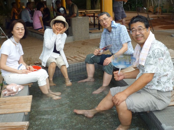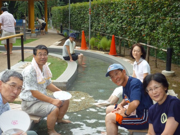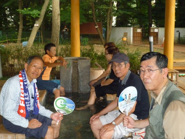 日時:2009年8月29日(土)午後2時- 場所:小平グリーンロード 一橋学園前駅、桜橋から玉川上水駅 約6.5Km 参加者(敬称略、順不同) 1.ウォーキングの部(10名): 峯川、早川、杉本、土橋、金丸、磯貝、桑木、芳賀、阿部、上泉 2.グルメの部(10名):同上 内容: 1. ウォーキングの部 今年4月に続いて、好評だったようなので2回目の小平グリーンロード。今回は、天気の心配はまったくしていなかったが直前になって台風11号発生のニュース。夕方または夜から雨になるとの予報だった。日中は強い日ざしで実に暑かった。残暑というよりは真夏に逆もどりの暑さであった。 午後2時国分寺駅集合、西武多摩湖線で一橋学園前に移動。午後2時半過ぎにスタート。この駅から徒歩数分のところにお住まいのHMさんにとってはまさに地元のコース。駅周辺はいろいろな小さなお店がたくさんあり下町を感じさせる。ただやはりシャッター通りにもなっているとのことだった。 一般道を小平グリーンロードの桜橋へ向かう。桜橋にて軽いストレッチによる準備運動とスロー筋トレをやった。ウォーキング等の有酸素運動前にこの筋トレをすると、脂肪燃焼率が倍になるとのこと。今回は腕まわし、もも上げ、スクワットをやった。まだ皆さんだいぶ余裕があるようであまり効いていなかったようだ。次回はもっと回数を増やす予定。 桜橋からグリーンロードを進む。玉川上水沿いの緑多い自然の中の道。土の上をこれだけ歩けるのは気持ちいい。夏の暑い日差しは木々によって遮断され、時折涼しい風が吹いていた。しかしこの日は異様に気温が高かったようで汗をたっぷりかいた。たくさんの木が茂っていてそれらの木の名前を説明してくれる、ハイキング通のAH君。日差しの中を歩く時はあえて長袖シャツ、帽子(麦わら帽)で直射日光を肌に直接当てないことが重要との説明だった。どんぐりの実もたくさん落ちていて拾っておみやげに。 小平市のこの近辺は学校がたくさんある。一橋学園駅から玉川上水駅までの間にあった学校を羅列すると下記のとおり。 国土交通大学校、関東管区警察学校、一橋大学小平国際キャンパス、津田塾大学、創価高校、白梅学園、朝鮮大学校、武蔵野美術大学、小平西高校 ゴールの多摩都市モノレール 玉川上水駅 手前の「こもれびの足湯」に午後4時10分着。4時半終了に何とか間に合った。 この足湯は 小平市 、 武蔵村山市 、 東大和市 の3市が共同で運営する清掃工場(小平・村山・大和衛生組合)に隣接してあり無料にて利用できます。3月から9月は午後4時半まで、それ以外の時期は午後4時まで。小平・村山・大和衛生組合のホームページに以下の説明がありました。 ・天然水を使用 足湯施設に注がれるお湯の原水は、衛生組合内にある深さ250mの井戸により汲み上げられた地下水(天然水)です。 ・ごみ焼却炉の余熱を利用 井戸から汲み上げられた天然水は、ごみ焼却炉の余熱を利用してお湯になり、足湯施設に注がれます。 ・排ガス冷却用水として利用 足湯施設で利用されたお湯は、衛生組合内にある水槽に戻され、排ガス冷却用水として再利用されたのち、蒸発し、煙突から大気放出されます。 足湯につかり、きょうの足の疲れを癒した。いいお湯加減で思わず服を脱いで横になって全身お湯につかりたいと思ったのは私だけでしょうか。 午後5時前にモノレール 玉川上水駅 着。本日のウォーキングはここがゴール。約6.5Kmの歩行距離でした。記念写真後午後5時のモノレールに乗って立川に向かった。モノレールに乗る直前に急な夕立がざーと降った。もう少し遅かったらずぶぬれだったかもしれない。 2.グルメの部 本日のグルメの部(単なる飲み会)は立川駅近くのの居酒屋。決めていた店に向かう途中、「生ビール半額でーす」という声にすばやく反応した賢いおかあさん、おとうさん方。すぐに変更してその店に。ビールだけは確かに半額だった。食べ物も普通で、経済的でよかった。 午後5時半から8時半まで尽きない話し。今後の予定、還暦マラソンについて酔う前に話した。とにかく「還暦ホノルルマラソン準備委員会」は立ち上がった。皆さんのところに突然準備委員会召集通知がいくかもしれません。その節は、新たな飲み会のひとつとしてご都合をつけてご参加ください。 感想: 8月末のウォーキングであり、多少涼しさも感じられるかと思っていたが真夏の暑さだった。暑さのために不参加にした人もいたのではと思う。それでもほぼ平均的な10名参加。 もう1年半にわたり19回目のウォーキングだが、この成果を体重、体脂肪率等のデータとして取りたいと思った。その提案をしたところ、ウォーキング後の飲み会があるからデータにならないのではとの意見。そのとおりだろう。もしまとめるとすると「還暦前後におけるウォーキングによる有酸素運動とその後の飲み会による健康度向上について」(副題「フルマラソン完走へ向けて」)のような研究テーマになってしまいそうだ。 上泉義朗 |