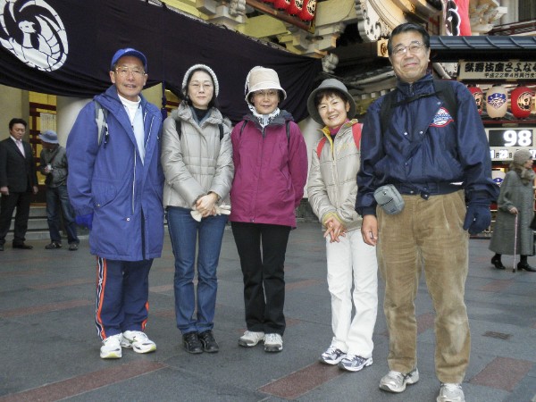 歌舞伎座の前で記念撮影。この歌舞伎座も閉館まであと98日という電光掲示板が出ていた。全面建替えとのことで新歌舞伎座完成は2013年春の予定です。伝統ある歌舞伎座も当分の間閉館となり、ファンにとっては寂しいかぎりとお察しいたします。現在の建物は、大正14年に竣工した建物を、昭和26年に改修、再建したものとのことで、老朽化対策としては建替え止むなしとの結論だったようです。