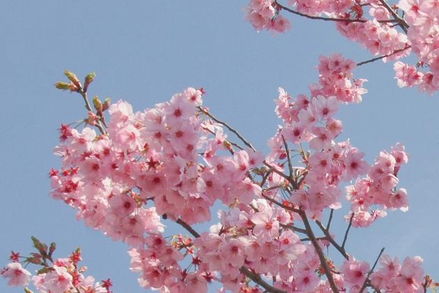 河津桜(カワヅザクラ) 伊豆半島の河津町で発見された早咲きの桜。花色が濃く美しい。東京では3月上旬に開花