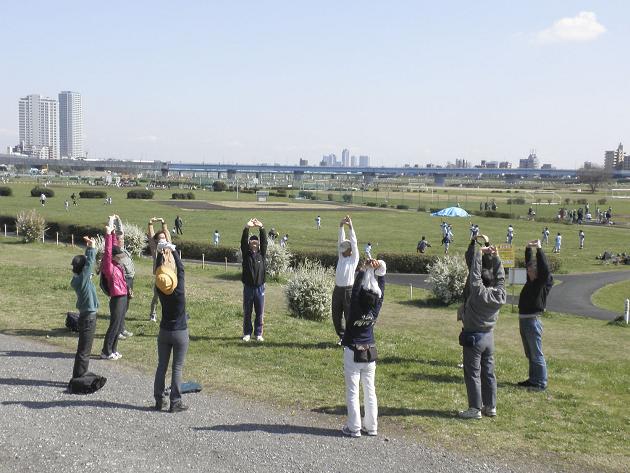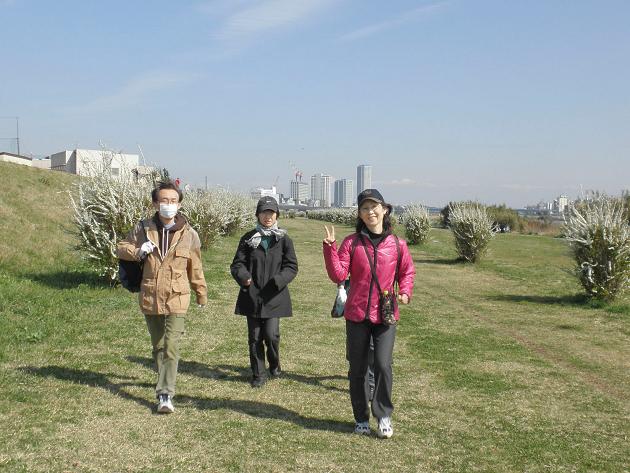 二子玉川駅に午後1時集合。(財)東京社会保険協会所管の二子玉川園スポーツセンター(KB君勤務先)へ歩いた。途中、野川沿いの土手に早咲きの桜の木を1本見つけた。MNかあさんの話によるとおそらく河津桜だろうとのこと。