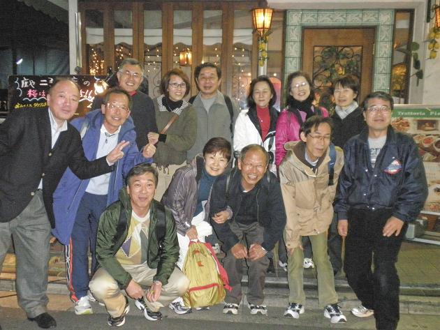 二子玉川駅前の高島屋裏の「庄や」でグルメの部スタート。ふたりが合流して13名でのにぎやかな飲み会。5時から8時までの3時間、きょうもいろいろな話題であっという間だった。本日の主な話題は、12月の還暦ホノルルマラソン。