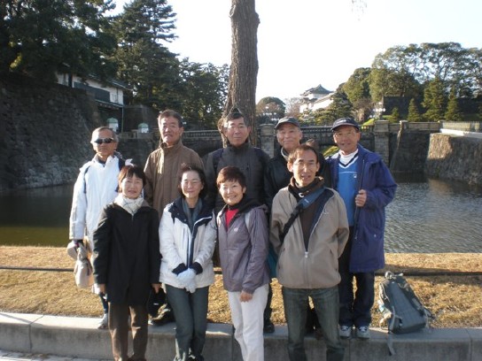 午後1時、いつもの皇居桜田門時計塔の下に集合。年末の多忙の中、計11名が集まった。一時体調を崩していたIS君が回復して参加。お元気で何よりでした。奥様手作りのケーキを皆でいただき、久しぶりの再会を喜んだ。ストレッチ、二重橋前での記念撮影後午後1時25分ごろスタート。 2.グルメの部