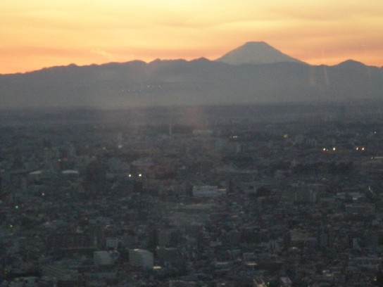 都庁展望台より夕焼けの富士山を望む
