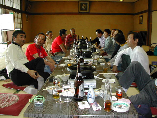 すき焼きのグルメをHR君に予約をしていただいていた。山梨からはこのグルメの部だけに4人参加をしていただいた。計18名のにぎやかな飲み会。ビールで乾杯の後、おいしいすき焼き、締めくくりはうどんすき。一升瓶のワインが赤と白1本ずつ。あっという間になくなってしまった。山梨との交流もあり、全員の自己紹介。今後もっともっと山梨メンバーも含め、多くの44会メンバーにこのウォーキングに参加してほしいと思った。約2時間で終了。その後はさらにワインを飲みに行く人、勝沼ぶどう郷駅に直行する人で別れて、車で送っていただいた。