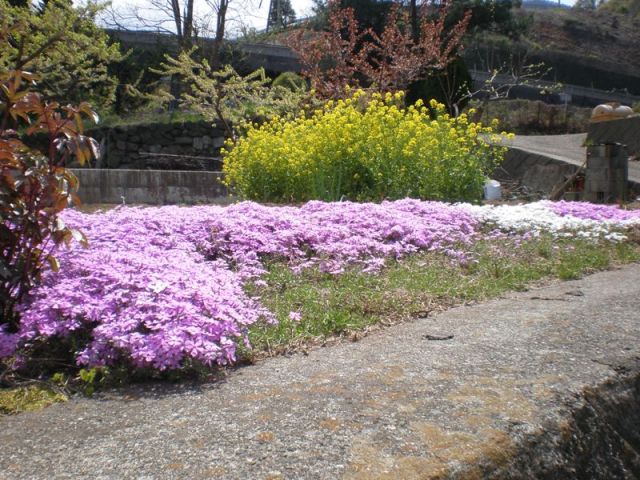 時期的には、桜の花見シーズンは終わり、桃の花も2週間前ぐらいで終わりだろうと予想していた。しかし今回のウォーキングではたくさんの美しい花に出会えた。その美しさは「44会の女性だ」!!!つつじの花、山桜、桃、りんごの花、芝桜に菜の花とたくさんであった。途中なぜかあの箱根の山歩きと同じ大きながまがえるにも出会った。