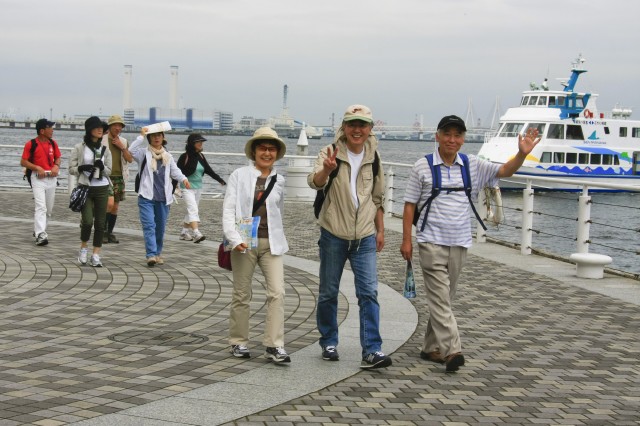 44会としては初めての横浜でのウォーキング。午後1時半桜木町駅集合。11名の参加となった。今週は、台風6号が通過後だいぶ涼しくと言うより寒くさえなった。きょうは再び暑い日ざし、しかし涼しい風もあり、蒸し暑さはあまり感じなかった。