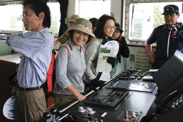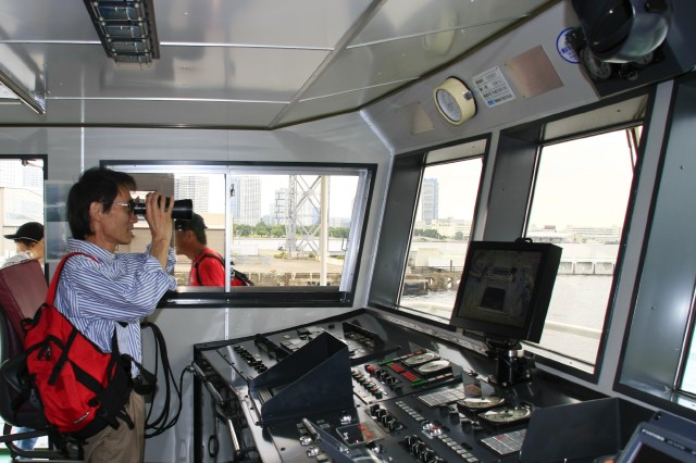 午後1時45分桜木町駅前を出発。観光案内所で映画「コクリコ坂から」横浜ガイドを入手。まずはランドマークタワーからクイーンズスクエアへ。建物を出て海岸沿いを歩いて赤レンガ倉庫に向かう途中、消防巡視船「ひりゆう」と清掃兼油回収船「べいくりん」の公開をしているとの案内があった。係りの人からめったに見ることができないと言われ予定外の見学。現役の船であり、船内の操縦席等の前では還暦のおとなが皆子供のようにいろいろな質問をして楽しんでいた。