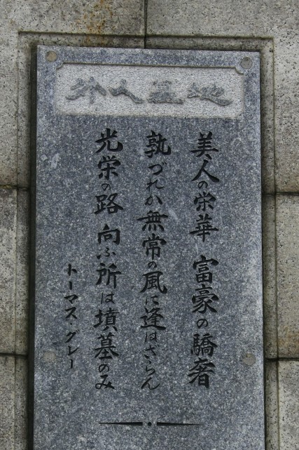 山下公園を後にして「港の見える丘公園」へ。展望台から確かに港は見えるが眼下の景色は倉庫の建物とマンションがほとんど。「港の見える」というイメージとは違っていた。その後「外国人墓地」へ。ここはペリー提督が開国交渉のため来日した際、水兵のひとりが亡くなられ、その墓地として幕府が提供して以来、多くの故外国人のために提供した墓地とのことです。現在は約40カ国、4,400人あまりの外国人が葬られている。多くは船員で、その肩書きとしてCaptain(船長または大尉)Lieutenant(中尉)、2nd Lieutenant(少尉)との記載が多かった。