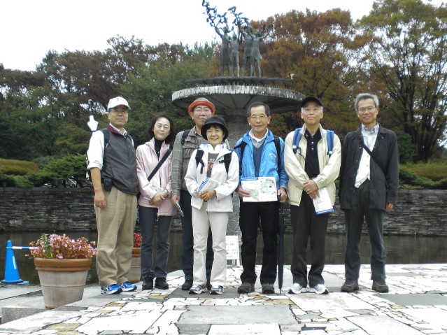 前日の天気予報では、立川方面も午後から強い雨とのことだった。しかしMNさんとの相談で雨天決行を決め、メール連絡もしていただいた。当日午前中、雨は降ったりやんだりで時折強く降っていた。午後も大雨を覚悟して出かけ、上下のレインコートも持参した。午後1時半立川駅集合。雨はやんでいた。歩き始めれば降り出すのかと予想しながら1時40分に駅を出発。雨は降ってこない。結局その後全く降らず、曇り空で少しむし暑い陽気の中のウォーキングだった。あの天気予報は何だったのか。POWER44が天気を変えた。雨の予報で参加者は少なくなると予想していたが9名の参加。特にAI君は本日初参加。