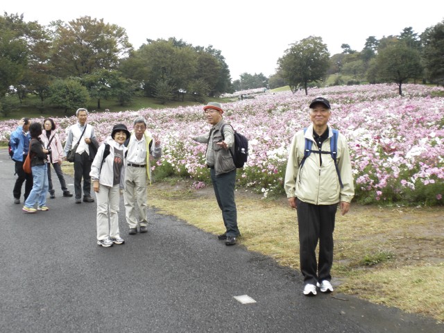 「花の丘」の一番上で大きな石にすわって休憩。いつものように飴等の差し入れをいただいた。ラスク、栗、レモンの飴、塩飴。ここで突然話題は本日参加のKWさんの中学時代の恩師の話になった。なんと本日初参加のAI君のお父様が、KWさんの中学時代に尊敬していた先生だったことがわかった。奇遇である。初参加、初対面の同級生が恩師の息子さんで、ウォーキングの休憩の時それがわかったという話である。44会の集まりはいろいろ不思議なおもしろいことが起きる。