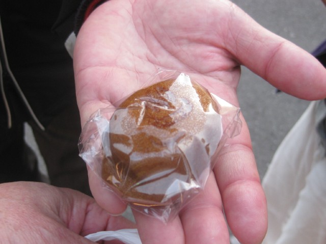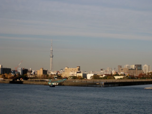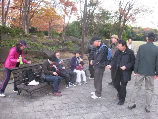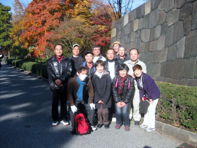 天気予報ではかなり冷え込むとのことだったが、日ざしは実に暖かく、歩き始めるとすぐにからだも温かくなった。きょうの予定は当初、月島に午後2時半集合だったが皇居をいつものように歩いてから行くこととした。時間があまりなく皇居外周は大手門から東御苑に入った。東御苑内の紅葉がきれいで写真も撮った。平川門から出て桜田門にいつもと逆コースでもどり休憩なしでそのまま日比谷、有楽町、銀座へと進んだ。師走の人出はやはり多かった。景気がよくなっての人出ならいいがあまりそうとも思えない。銀座4丁目の宝くじ売り場はすごい長蛇の列だった。人混みの中ではあまりスピードは出せない。信号待ちも多く、月島駅3番出口に予定より20分遅れの午後2時50分着。MTさん、FK君と合流。少し休んで3時に再スタート。MTさんのアレンジのコースでビッグサイトを目指した。このコースは東京マラソンの37Kmからゴールまでのコース。2年前に走った自分としてはあの苦しかった最後の5Kmの再現である。晴海橋を左折するところでMTさんの感激の応援、写真を撮っていただいたことを思い出し皆に話した。有明テニスの森にて小休止とした。午後3時55分から15分間。トイレ休憩とFK君からの湯河原温泉まんじゅうの差し入れをいただいた。きょうは、この差し入れ以外に、途中でMNさんからのアーモンドチョコ、ほし梅、しょうが・はちみつのど飴、さらにFRさんからは鰍沢の松月堂の栗せんべいもいただいた。再度歩き始め、本日の目的地、ビッグサイトに午後4時35分着。本日の総歩行距離約14Km。