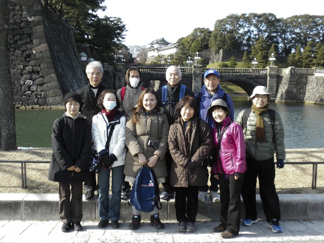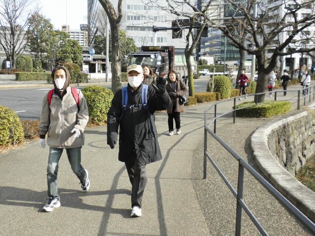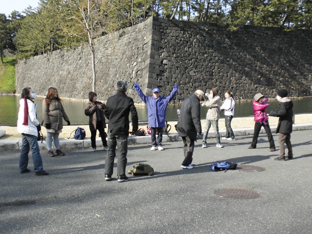 本年第1回目は原点である皇居桜田門。朝7時43分の山梨県忍野村あたりを震源とする大きな地震の影響を少し心配したが10名が午後1時集合。かなり気温が低く、この日の千代田区の最高気温は6℃。スタート前はウォーミングアップのためのストレッチと体操。恒例の二重橋前記念撮影後午後1時15分スタート。