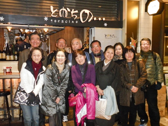孫の話、海外旅行の話し等いろいろな話題の中で注目は、HG君が今年の東京マラソンに当選、出場することになったこと。10倍以上の申込での当選はうらやましい限り。皆で応援に行こうと盛り上がった。2010年のホノルルマラソン参加後、すでにAB君も2回目のフルマラソンレース(昨年11月の河口湖マラソン、私も参加)を完走している。さらに挑戦者がでることを期待する。2015年、65才で再びホノルルマラソン挑戦の話題が出ている。9時過ぎまで3時間あまりの飲み会。記念写真を撮って解散。