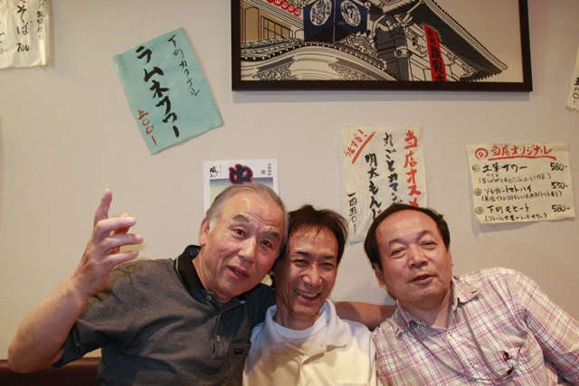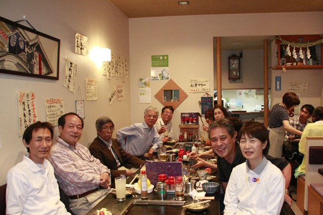 内容1.ウォーキングの部 午後1時半 桜田門が改修工事で不通のため、集合が遅れたので予定より30分遅れで皇居一回りにスタート。食福のママさんも快調にWalking。その後やはり皇居外苑にある楠木正成像の前で記念撮影をして銀座へ。新装開店の歌舞伎座前でも記念撮影(前回の撮影は2010年1月23日)。ここで第九練習組とグルメ直行組、そして風邪で帰宅組とに別れました。 2.グルメの部 月島のもんじゃ焼き店、"土筆"で高齢のグルメの部を開催。このために4名の方々がお忙しい中、ご参集くださいまして誠に有難うございました。お陰様で賑やかにそして楽しいパーティーになりました。 この"土筆"は近々中に閉店するそうで寂しい限りです。 芳賀直行 |