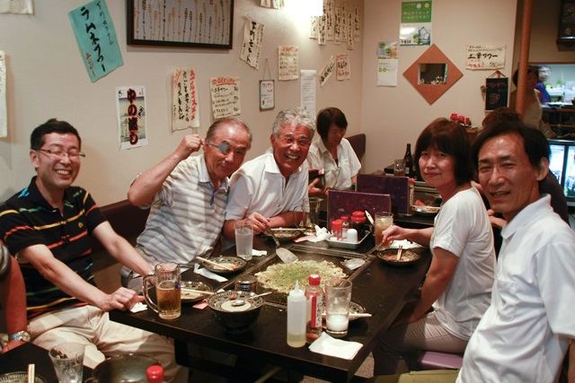いつものウォーキングと違ってゆっくりと約1時間半歩いた。いつもと違う疲れを感じた。本日はまだ回りきれない場所もあった。違う季節にもう一度来てもいい場所だとの意見が多かった。午後3時に植物園を退園。本日は8月25日に開催される第九合唱へ参加する人たちの練習日と重なっていたため、植物園を出た所で本日のウォーキングは終了。茗荷谷駅からのウォークも含めて本日の歩行距離は5Km。合唱練習に参加しない人たちはさらに歩いて東京ドームへ。「野球殿堂博物館」の見学へ。合唱練習組は半蔵門へ。 2.グルメの部 長年お世話になった月島のもんじゃ焼「土筆倶楽部」は今月末をもって閉店となるとのこと。44会最後のチャンスとして本日のグルメの部は「土筆倶楽部」へ。本日を含めて69回の44会ウォーキングで「土筆倶楽部」を利用した回数は、12回でした。 感想今年の異常気象は確かに異常である。梅雨明け直後に気温が39度にもなり、その後は局地的豪雨があったり、きょうも昼の間、晴れているのに雷が聞こえ、時折涼しい風が吹いていた。案の定、夜になって大雨となった。それにしても最後の「土筆倶楽部」に行けず、涙が出るほど悲しかったです。長い間お世話になりました。健康でないと何もできないことをあらためて自覚しました。 上泉義朗 |