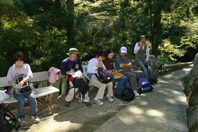 今回初めて私の地元でのウォーキング。皆さん遠くからの参加で申し訳ないと思いつつ、ご希望もあったので計画しました。紅葉にはまだ早かったのですが、美しい緑の自然を満喫できたと思います。山の景色、神社、仏閣等日本のいい所かと思います。金木犀の花の香りになぜかうっとりしていた飯野君。予想外に険しい登りと下り。しかもほとんどが石の階段で、これはよかったのかきつかったのかわからないが、「階段の登りなんて聞いてなかったじゃん」という意見も。それでも全員無事にけが等なく降りることができてよかったです。筋肉痛になる人がいるかどうか、後日確認してみたいと思います。参加者の皆さんぜひ、ご連絡ください。
