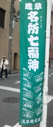 この七福神もうでは古くは江戸時代末期に始まり親しまれてきたが、戦後一時中断、1977年(昭和52年)に復活したとのことです。浅草名所(などころ)七福神は、福禄寿、寿老人(神)が二社ずつあるので計九社寺あります。「九は数のきわみ、一は変じて七、七変じて九と為す。九は鳩でありあつまる意味をもち、また、天地の至数、易では陽を表す」という古事に由来したことによるそうです。