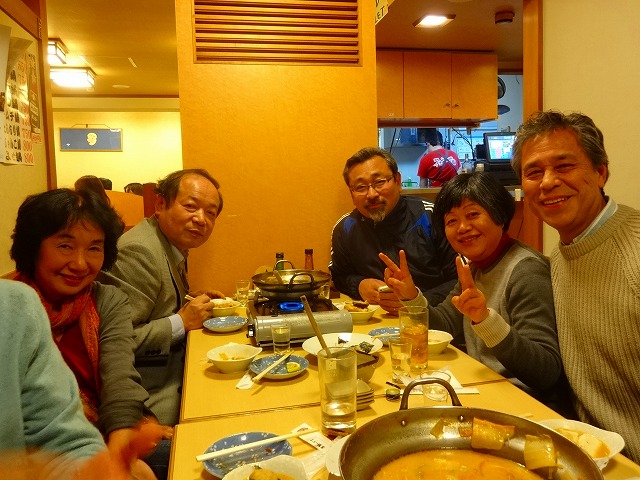 ビールで乾杯後は、日本酒が絶え間なく出てくるという感じ。つまみ類もたくさん、きょうも飲みすぎ、食べすぎのようである。鍋もあり、仕上げは雑炊。午後8時までの3時間あまりの新年初めのグルメの部、飲み会でした。