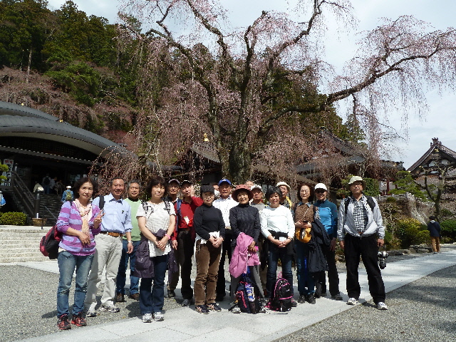 本堂前の樹齢400年のしだれ桜はまだ少し早かったが貫禄を感じさせる桜の花でした。過去10年の開花情報データによると、満開の日付けは3月23日から4月9日までの開きがある。今年は寒波の影響で開花が遅いという予想通り、まだ四分咲きでした。