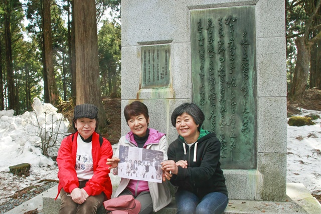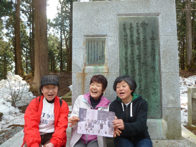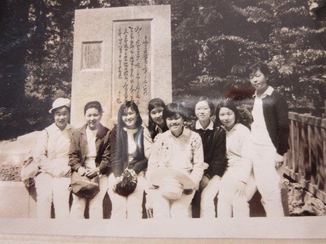 ここで、古屋(美)さんが、突然思親閣にある石碑を見つけた。高校1年の遠足でここに来た際撮ったという写真を持参していてその写真の石碑でした。古屋さんと峯川さんを含めてかわいい女生徒数人の写真。何と47年ぶりに同じ場所で記念撮影。