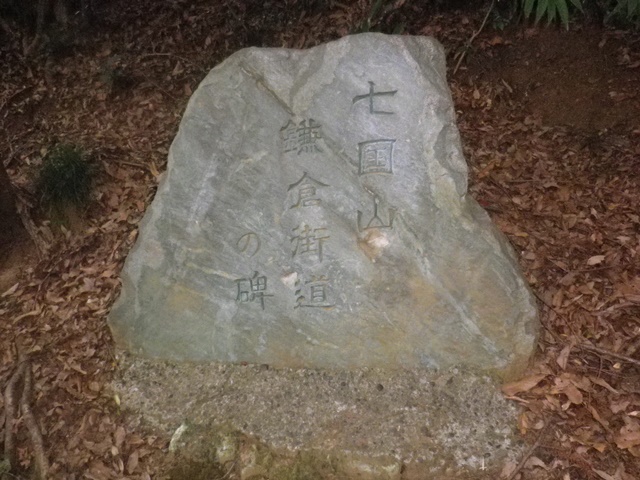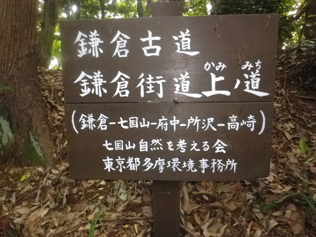 次は七国山の細い道に入った。まさに鎌倉街道の証しである「七国山鎌倉街道の碑」と「鎌倉井戸」を見つけ、記念撮影。七国山(ななくにやま)は、標高128メートルほどの山で、かつてはそこから相模・甲斐・伊豆・駿河・信濃・上野・下野の七つの国が見渡せたといい、そこからこの名があるとのこと。七国山の周辺は、東京都により「七国山緑地保全地域」に指定され、またその付近は東京都により鳥獣保護区に指定されている。