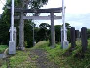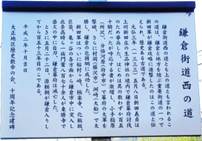八坂神社の鳥居は神社から約100m離れた所にあった。神社境内が道路で分断されたためとのこと。鳥居脇には五基の石塔があり、その一つに「右かまくら道、左八をうじ道」の彫字がある。 また、「大正地区歴史散歩の会」が立てた標札があり、ここが「鎌倉街道 西の道(上の道のこと)」で新田義貞軍がここを通ったと説明されているとのこと。しかし今回は残念ながら、雨の中少し急いでいたためかこの石塔と標札を見過ごしてしまった。