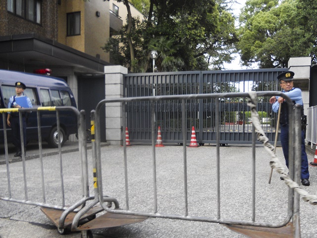 教育園を出て、外苑西通り、通称プラチナ通りを北に向い、広尾の有栖川宮記念公園へ。ここも自然の緑も多く、若いカップルの散歩道。さらに北上し、六本木を目指した。途中中国大使館前を通過。前後の道路には警察官が多数で警戒していた。かなりの人件費の出費を感じた。