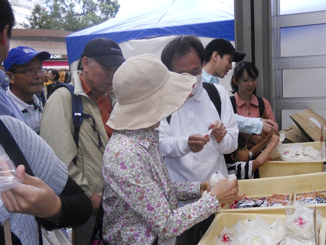 六本木ヒルズの毛利庭園、イベント広場に行った。福島支援のイベントをやっていて、多くの食材を販売していた。その中で、峯川さんが喜多方ラーメンのつめ放題にチャレンジ。500円で17袋を獲得。商売にならないのかもしれない。