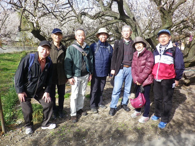 内 容1.ウォーキングの部 午後1時半JR御殿場線下曽我駅集合。実際には1時13分着の電車までに全員が集まっていた。1時半出発。峯川さんのリベンジのためでもあり昨年と全く同じ場所でのウォーキング。まずは、中河原梅林方面に向い、瑞雲寺へ。 瑞雲寺は明応元年(1492)創立。山号は龍珠山。曹洞宗のお寺で、曽我・中河原梅林の中にある。白梅、紅梅他たくさんの梅の木がある。境内に祀られている「力不動尊」は、財産、知力、体力、子宝のご利益がある。また足柄平野随一といわれた私学「自修学校」の発祥の地でした。 瑞雲時を後にして、原梅林に向かう途中、宗我神社へ。宗我神社は、長元元年(1028年)宗我播磨守保慶の建立で、宗我氏の祖先を祀った神社。曽我郷六ヶ村(上曽我、曽我大沢、曽我谷津、曽我岸、曽我原、曽我別所)のそれぞれの鎮守を明治時代に合祀し、曽我の里の総鎮守となっています。境内には大きなけやきの木が2本あり、共に宿木がありおもしろい光景です。 次は、城前寺へ。昨年はここには来ていませんでしたが、今年は野田さんの推奨で立ち寄ることにしました。城前寺は、1193年(建久4年)、富士裾野で親の仇工藤祐経を討った曽我兄弟の菩提寺。曽我兄弟の叔父宇佐美禅師が兄弟の菩提を弔うために庵を結んだのが始まりとされ、曽我城の大手門がこの辺りだったことから、城前寺となったとのこと。曽我兄弟の仇討ちは、源頼朝が催した富士裾野の巻狩りで起きた事件ですが、その後いろいろな謎の話しもあるようで複雑な物語のようです。 いよいよ原梅林、別所梅林に近くになり梅の木はあたり一面美しく咲き誇っていた。特にしだれ梅の花がきれいである。梅見を終え、次に向かったのは昨年と同様、アイスクリーム工場「小田原牧場アイス工房」。長い列に並んで、おいしくいただきました。抹茶、ミルク、梅酒、ラムレーズン、アーモンドクランチが人気のようでした。自分は栄養価を考えてブルーベリーとしました。 アイス工房を午後3時35分出発。国府津駅に向かい、午後4時10分着。昨年は40分かかったが今年は35分。国府津駅午後4時18分の東海道線で小田原へ。これも昨年と全く同じコースで、小田原城北入口から入り、昨年同様「御用米曲輪」の発掘工事、天守閣を横目に見て、常盤木門、銅門を通って馬出門から出た。銅門の梁には太い松の木が2本使われている。表面が丸く削られて、ディンプル上になっているがこの目的について、「木の腐食を防ぎ長持ちさせるため」との意見が出た。表面積が大きくなって、それがいいのかなと思った。昨年同様、この話しに対して野田君のボケ「飛距離を伸ばすためだよ」、上泉の突込み「梁がどこまで飛んで行くんだ」。 駅に向かうお堀端通りを歩き本日のグルメの部の店を探した。小田原駅近くの居酒屋「小田原板前バル」前に午後5時着。本日の歩行距離は11Kmで終了。 2. グルメの部 午後5時過ぎ、ビールで乾杯でスタート。新しい店で席も7人がちょうど座れる個室風の8人席。海鮮サラダ、胡瓜と茄子の浅漬け、刺身盛合せ、油揚明太子焼き、桜エビ天ぷら、カニクリームコロッケ、やみつきキャベツ等のおいしい食べ物。飲み物は芋焼酎「黒霧島」のボトル、赤ワイン、日本酒、ハイボール等をお好みで。 今日も話題は豊富で、話が飛び交う。ここのところ健康関連の話題が多い。その中で下記2件を紹介します。 1.腸内細菌「フローラ」について 2.フォークダンスについて 感 想毎年2月は梅見が定番となりました。今年もいいタイミングでたくさんの美しい梅の花の中を歩くことができました。もう3月になり春も近いかなと感ずることができた梅の花見でした。昨年とほぼ同様なコースを歩きましたが、時間の過ぎるのが早いことをあらためて実感しました。「まるできのうのような気がする」と昨年も参加した人の感想でした。高齢になればなるほど時間の速さを感ずることになります。健康を維持して短かい時間を有意義に過ごしましょう。春は近いです。 上泉義朗 |