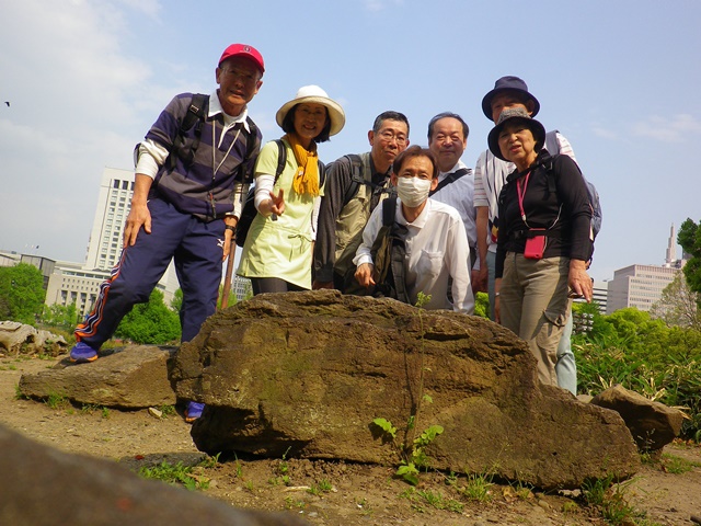 皇居の後は日比谷公園へ。人出も多く、自然の中で花、新緑の木々がいっぱい。スポーツ、散歩、家族連れとにぎわっていました。何と日比谷公園の中の山(三笠山)を発見、登山(数歩で山頂)をしました。新橋まで歩き本日の目標の場所はお台場。もう少し歩くつもりが新橋駅で終了、ゆりかもめに乗ることになった。よって本日の歩行距離は8Km。