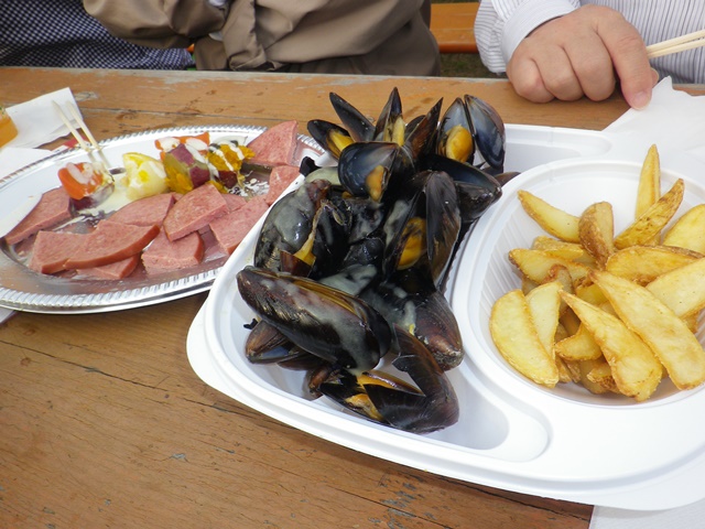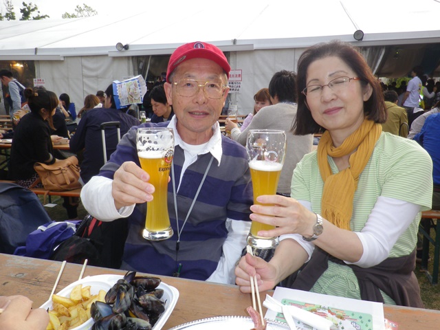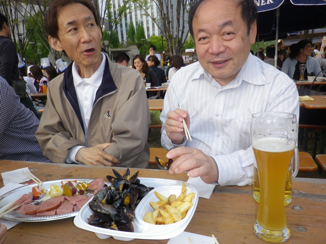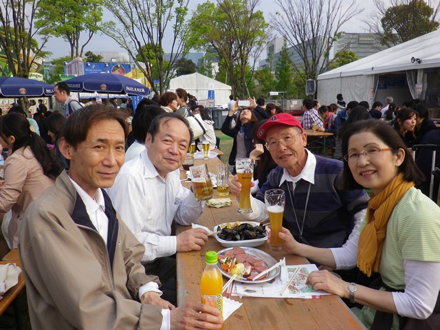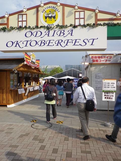 ゆりかもめに乗って台場駅下車。「オクトーバーフェスト」というイベントがきのうから始まっていたため、行くことにした。ご存知のとおり、ドイツで毎年10月に開催されるビール祭りを日本の各地で再現しようというイベント。お台場を皮切りに今後、日比谷、駒沢、奈良、立川、仙台、豊洲、芝、横浜、新宿、再びお台場、日比谷、その他全国で開催されます。ドイツのビール、料理を楽しむことができます。本日もかなりの人出があり、席を何とか確保した後、ビール(エルディンガーというまろやかな味のビール)と料理(サラミステーキとムール貝ガーリックバター和え)でドイツをひと時