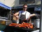 ドイツと言えば「ソーセージ」ですが「オクトーバーフェスタ」にはソーセージ以外にも人気の食べ物があります。プレッツエルです。普段の倍のサイズのプレッツエルで、1リットルサイズのビールジョッキに負けないほどのビッグサイズです。パンの様に柔らかく焼き上げたプレッツエルの出来立てとビールは最高です☆でもソーセージ屋さんはやっぱり大人気です☆サイズもビッグサイズなので食べごたえ抜群です。