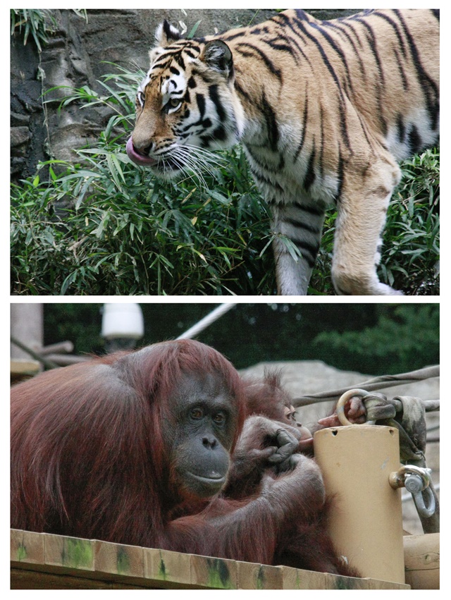 広い園の中、見たい動物はたくさんいた。見た順に、ライオン、ペリカン、キリン、アフリカゾウ、フラミンゴ、シマウマ、コウノトリ、トナカイ、カンガルー、コアラ、オランウータン、テナガザル、トラ、アジアゾウ、サイ、オウム、ニホンジカ、ヤギ、バク。他にもたくさんいたが見きれない。動物が、できるだけ自然の中に住んでいるという感じであった。子供たちと全く同じように動物を楽しむ65歳のおじさん、おねえさんでした。