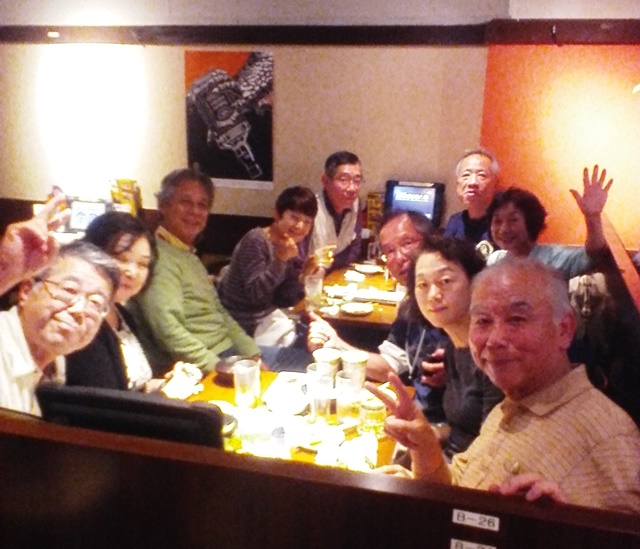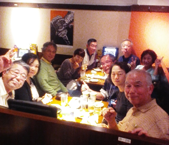 原宿から渋谷に電車で移動し、渋谷駅宮益坂下の「金の蔵」。5時過ぎに男子6名でビールでの乾杯でスタート。5時半過ぎに合唱練習後の女子4名が合流。ここでいつものように一段とにぎやかになった。