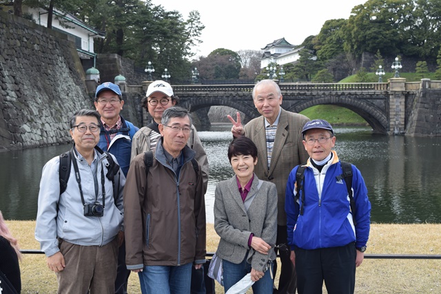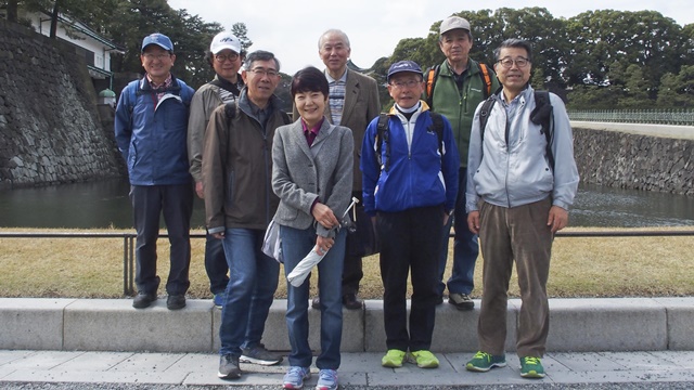 午後1時半皇居桜田門集合、8名が集まった。久しぶりに初参加者1名。小林英夫君、3年6組(1年も2年も6組、すべて男女クラス)とのことです。ありがとうございます。今後ますます初参加者が増えることを心より願っています。