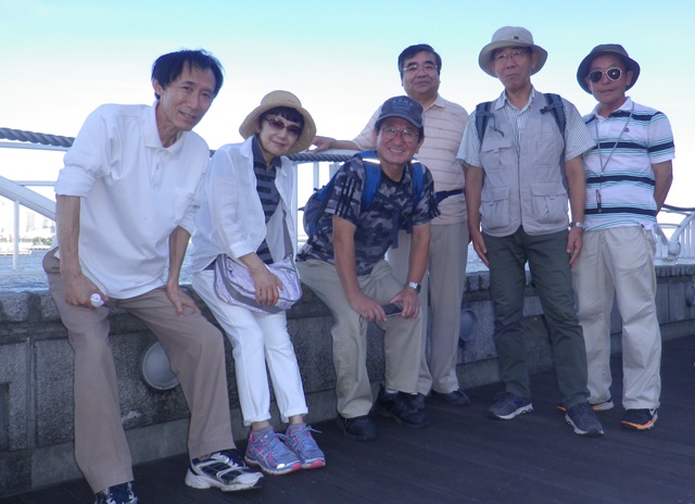 ここで藤江君が合流。本日のゴールは品川の予定だが、なぜ竹芝で合流したのか。本人はここがゴールと思っていたとのこと。よってさらに歩き始めた。次の日の出桟橋は、はとバスのコースになっているようで、ここも暑いのに観光客であふれかえっていた。
