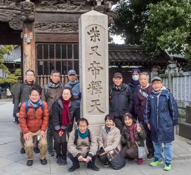 当日は、今年最強の寒波の影響で、西日本から東北までの日本海側は大雪だった。都内は晴れていたが、実に寒い、まさに冬の晴れた日であった。時折強いからっ風も吹き、甲府盆地の冬の風を思い出した。 午後1時35分スタート。葛飾柴又の七福神巡り。案内の看板もあり迷うことなく歩くことができた。多少の遠回りをしたところもあったが、ウォーキングなので問題なし。医王寺(恵比寿天)には大きな弘法太子像が立っていた。宝生院(大黒天)では住職の方にお寺の中まで案内していただき、お線香をあげての参拝をさせていただいた。真勝院(弁財天)には5つの如来像が立っていた。五智如来石像と言われ、密教では大日如来の知恵を五つにわけ、これに五仏をあて五智如来という。この五智如来石像は、造立碑から万治3年(1660)柴又村の名主済藤次郎衛門と相模伊勢原村の鳥居九良左右等により、逆修供養(生前自分の死後の冥福を祈って仏事を営むこと)のために建てられたとのこと。何と私の地元伊勢原市と関係があることに驚いた。