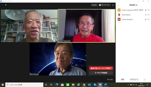 3回目のzoomによるオンラインミーティングを開催しました。7名の参加で、終了してすぐに堀口君に参加していただきましたがすでに皆退出していました。