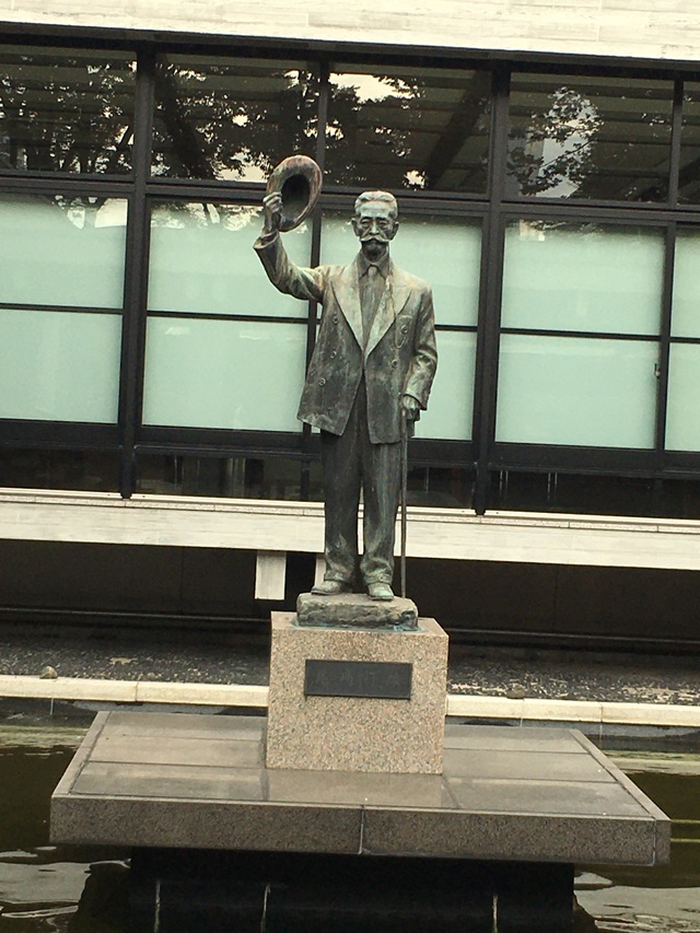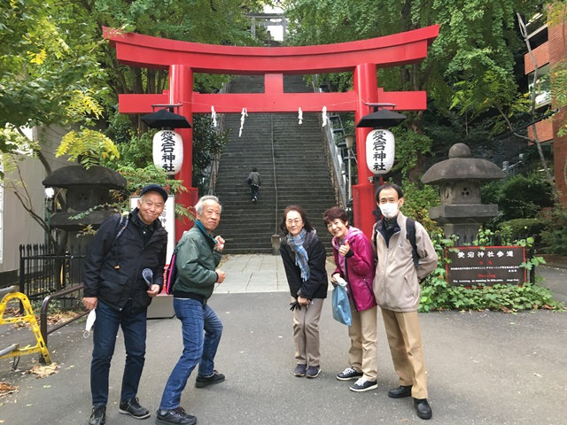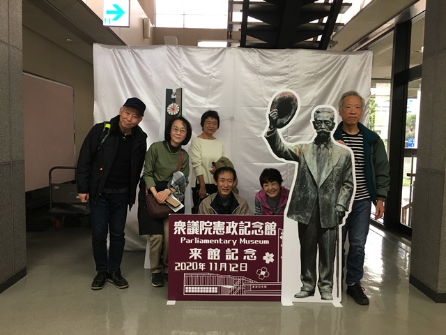 11月のウォーキングは文化部会とコラボで学びをしながら足を鍛えることにした。ここのところだいぶ寒くなり外に出るのが億劫になったせいか、コロナの第3波が来たと言われるせいか、今回の参加は前回より少なく6名となった。 まず日比谷公園に行き色づいてきた木々の間を散策、国会議事堂まで歩く。議事堂内部には予約がないと入れないので警官の警備を横目で見ながら、「衆議院憲政記念館」へ行く。 入り口に憲政の功労者である尾崎行雄の銅像が立っていて不思議に思ったが、ここは尾崎行雄記念財団によって建設され、衆議院に寄贈されたとのこと。 古くは加藤清正が屋敷を建て、その後彦根藩の上屋敷となり、時の大老の井伊直弼が居住し、明治時代には参謀本部・陸軍省が置かれたとのこと。内部で憲政の歩みなどを勉強して、田邊圀男の名札を見つけ、石橋湛山のコーナーなど山梨との関連を見つけた。 そのあと、堀口君のリクエストにより愛宕神社にある出世の石段を上りたいとのことで、階段側まで歩き急な階段を上ったがさすがに堀口君は足に2キロの重りをつけながら軽々と登ってしまった。 この石段は丸亀藩の間垣平九郎が家光公に馬で石段の上の梅を取って献上して、馬術の名人と讃えられたことで出世の石段といわれるようになったとのこと、堀口君もこれから出世して我々も近寄りがたくなるかも。 愛宕神社に出世をお願いして、近くのNHK放送博物館に行くと営業時間が16時までとのことで1分前に入りトイレだけ借りて帰ってきた。まさに冷やかしだけで終わってしまい、新橋まで歩き、MJOコンサートの帰りに行ったことのある「根室食堂」で打ち上げとなった。 本日のウォーキングは1万歩、気温は低かったが最後は暖かくなりビールが美味しかった。