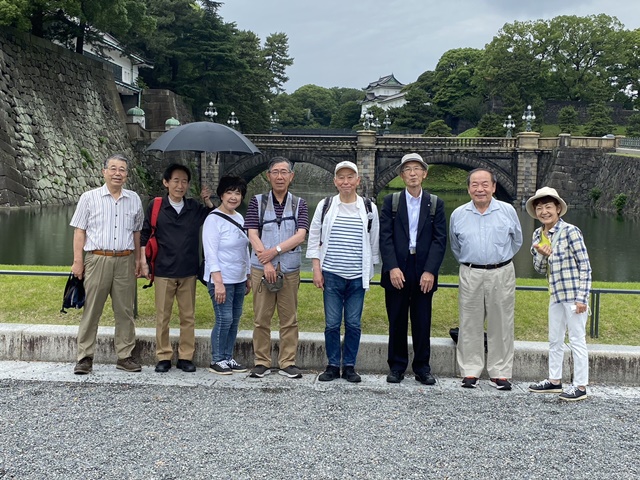 今回は梅雨の時期で天気が危ないのでコースを雨天用と晴天用と考えた。桜田門の時計台に集まったのは昨日送別会を終えたばかりの金丸さんを筆頭にいつものメンバーで8人が集まった。