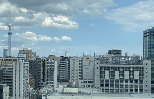 続いて今回は宇宙科学の教師でもある上泉さんに地下3階の宇宙を探るコーナーを案内してもらい、「霧箱」を説明してもらった。アルコールの過飽和蒸気の中を放射線が通ると軌跡の霧が観察できる?装置で、1911年にイギリスのウィルソンが発明した。説明を聞いて頭が痛くなってきたので、屋上に上がりハーブ園とスカイツリーの見える景色で気分転換をする。