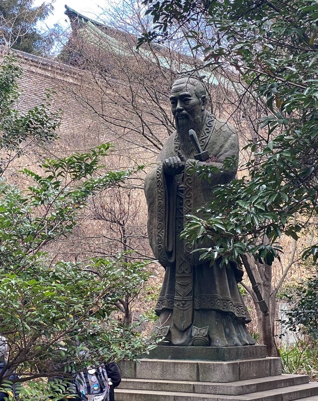 ここは1690年5代将軍綱吉によって建てられた孔子廟であり、日本の学校教育発祥の地である。構内の孔子像は世界最大で1975年に中華民国より寄贈されたもので、もう遅いが学業成就を祈願した。