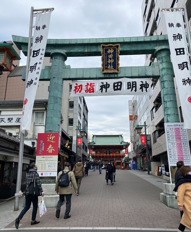 次に道を挟んで向かい側にある「神田明神」に一部の人は横断歩道外を、良識ある人は遠回りだが信号を渡り、初詣となったが新年が開けて2週間も経つので並ばず詣でることが出来た。