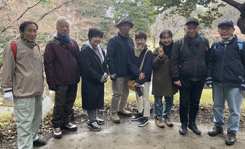 しかし、一昨日の春のような天気から一転して雨が降り肌寒い天候となってしまい、屋内のウオーキング中心に変更して、まずは小石川後楽園で梅を愛でようと入場すると、ガイドツアーの案内役の女性が手持無沙汰の風で立っており、我々が客になることにした。