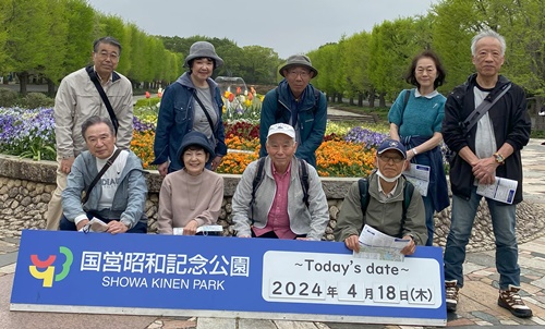 天気予報では晴れて暖かいはずであったが、空は雲が多く、雨が心配な空模様であった。立川駅前に集まったのは、男子6名、女子3名の9名で昭和記念公園に向かって出発した。