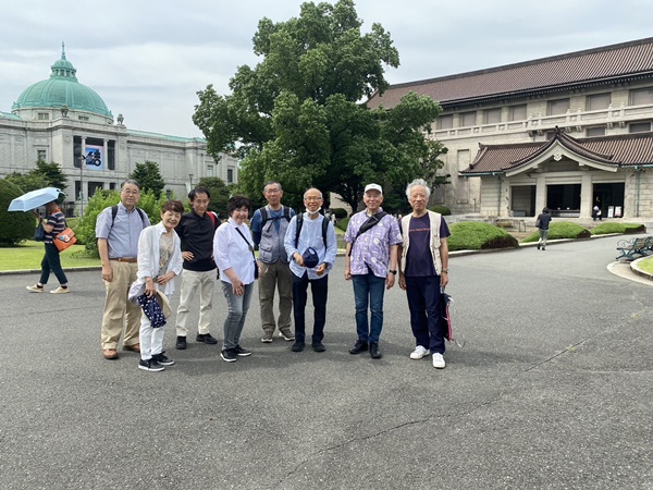 続いて東京国立博物館に行き、本館の裏にある庭園と茶室を散策する。庭園内には5棟の茶室があり茶会句会等に利用されている。庭園のベンチでチョコとお茶を頂き、次は東洋館に向かう。